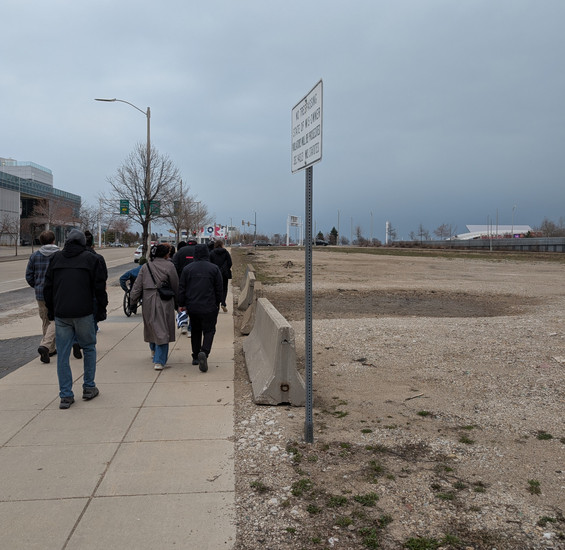 Some of the discussion also paralleled perspectives shared in the first walk & roll audit; The freeway structure in addition to the at-grade street design, create an uninviting environment where pedestrians are placed at a low priority in a place that has potential to become a haven for all modes, not just cars. In the first audit, this referred to the potential for the creation of a transportation hub in the area around the Intermodal Station and HOP Operations and Maintenance facility. In the second audit, the same idea was reflected in the participants expressed desire for creating an intuitive, accessible connection point for people to reach the lakefront without a vehicle. Renderings by John Everitt in 2024 reflect a similar vision and are available to view here.