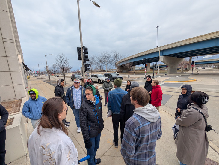 On March 31st, interested community members joined us to conduct the second walk-roll audit in our Walk & Roll series, this time focusing on the Lincoln Memorial Drive and Clybourn intersection.
